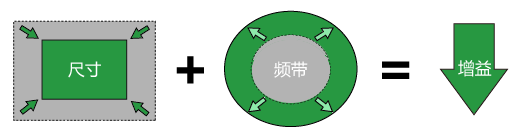 ・当天线要小(小型化)而同时增益要高时,频带则要变窄。